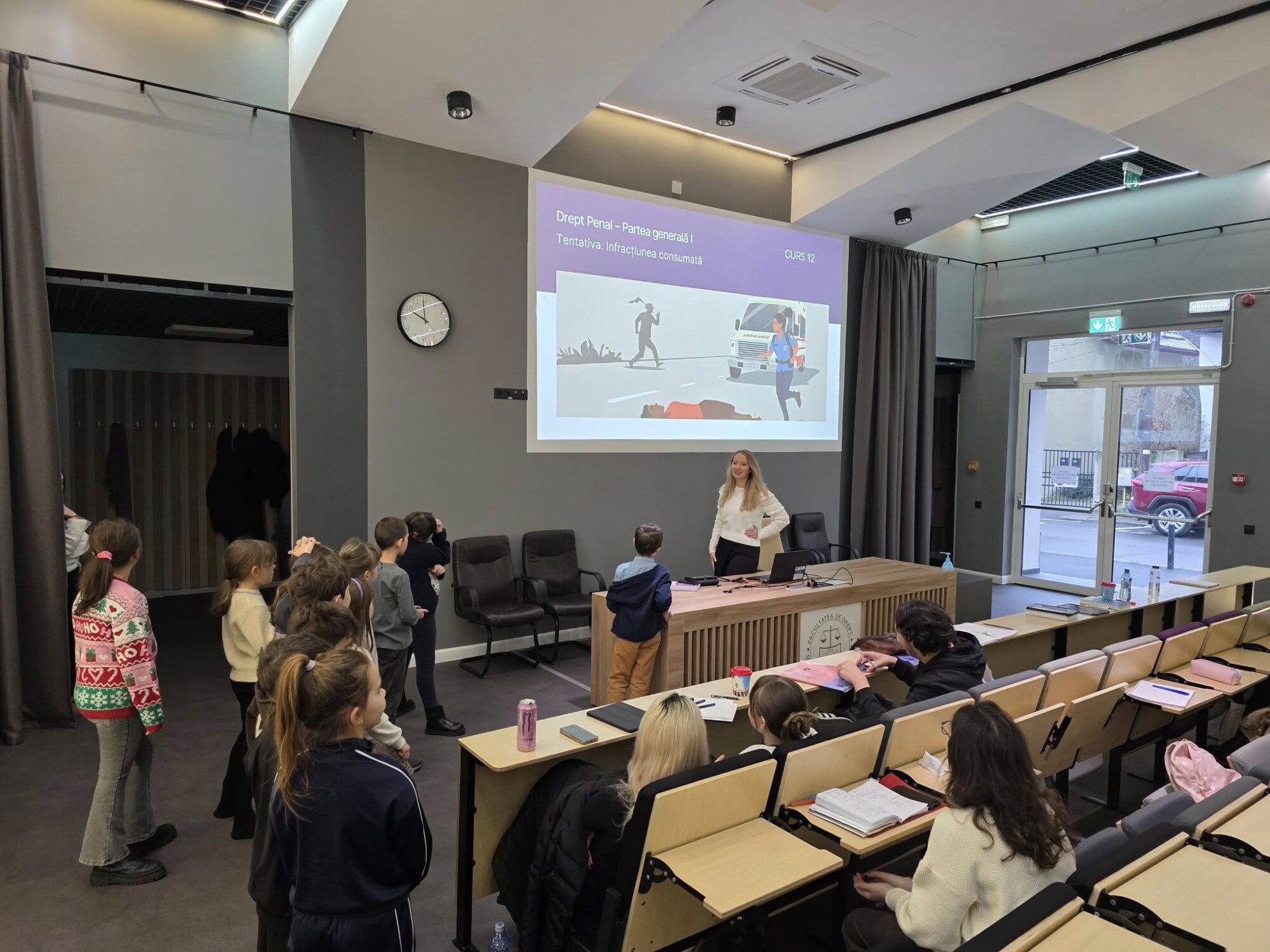As part of the “Alternative Week”, the Faculty of Law hosted, on Thursday, December 18, 2025, events dedicated to students in the 2nd and 6th grades from the Nicolae Bălcescu Theoretical High School in Cluj-Napoca. In the “Tudor Drăganu” hall, the students, together with their accompanying teachers, took part in a story-telling course with legal concepts (2nd grade) and a debate course (6th grade), respectively, on legal topics appropriate to their age, held by Associate Professor Cosmin Flavius ​​Costaș.